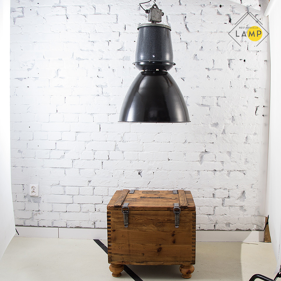 Bardzo charakterystyczna lampa wisząca przemysłowa stosowana do oświetlenia pomieszczeń fabrycznych. Doskonale zaprezentuje się w towarzystwie masywnego drewnianego stołu, w dużym salonie lub kuchni zaprojektowanej w stylu industrialnym.